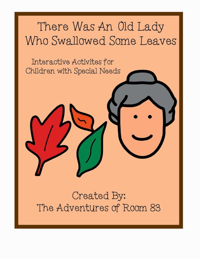 This is one of the Book of the Month- Interactive Activities for Children with Special needs. This bundle focuses on the children’s favorite, There Was an Old Lady Who Swallowed Some Leaves. In this bundle you will find a bunch of hands on activities for your pre-readers: