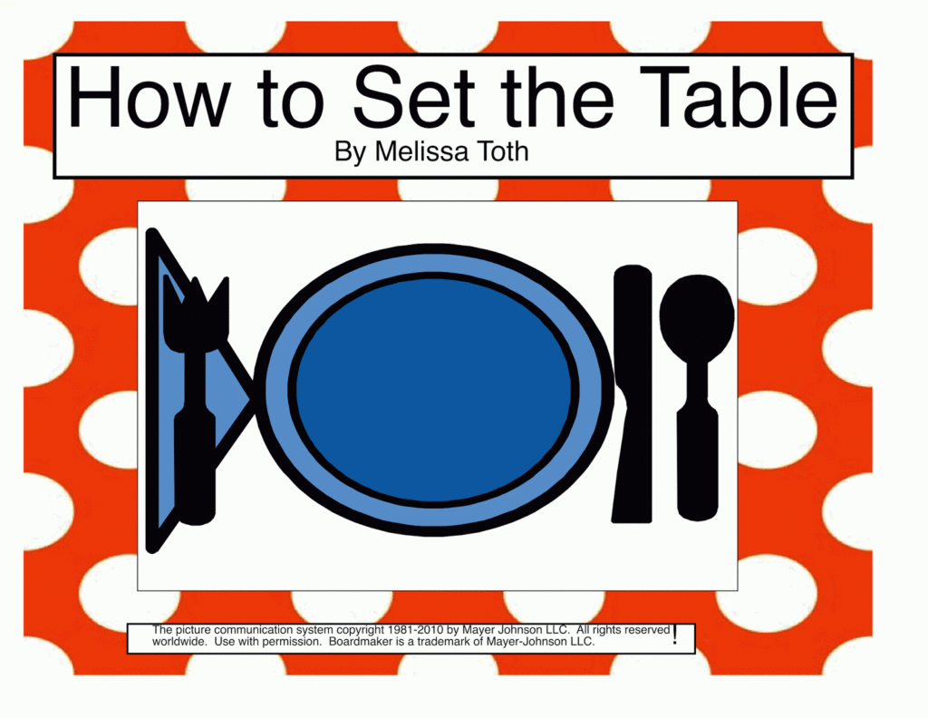 In November, one of my big themes I teach my kiddo’s are how to set a table. We also go over dinner table manners and etiquette. Before Thanksgiving break, my staff and I host a big feast for the kiddo’s. The kids help set the table and practice dinner table manners. This is always a highlight for our classroom! This adapted book provides hands on practice in how to set the table!