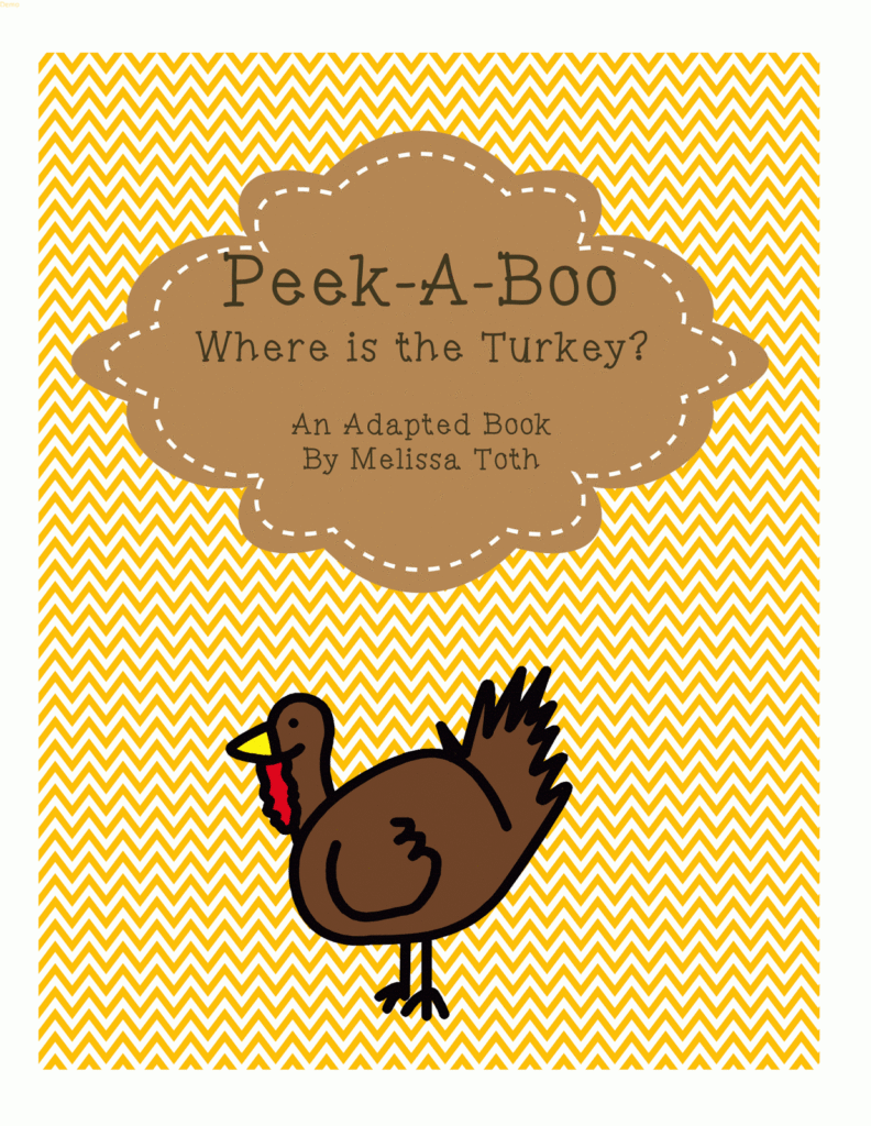 This is a fun interactive adapted book for children with special needs. The children can look to find a Turkey for the month of November, one of their favorite seasonal characters. This book uses prepositions and helps to build vocabulary. Students will use Velcro pictures to complete each sentence frame. This book contains 12 interactive pages.