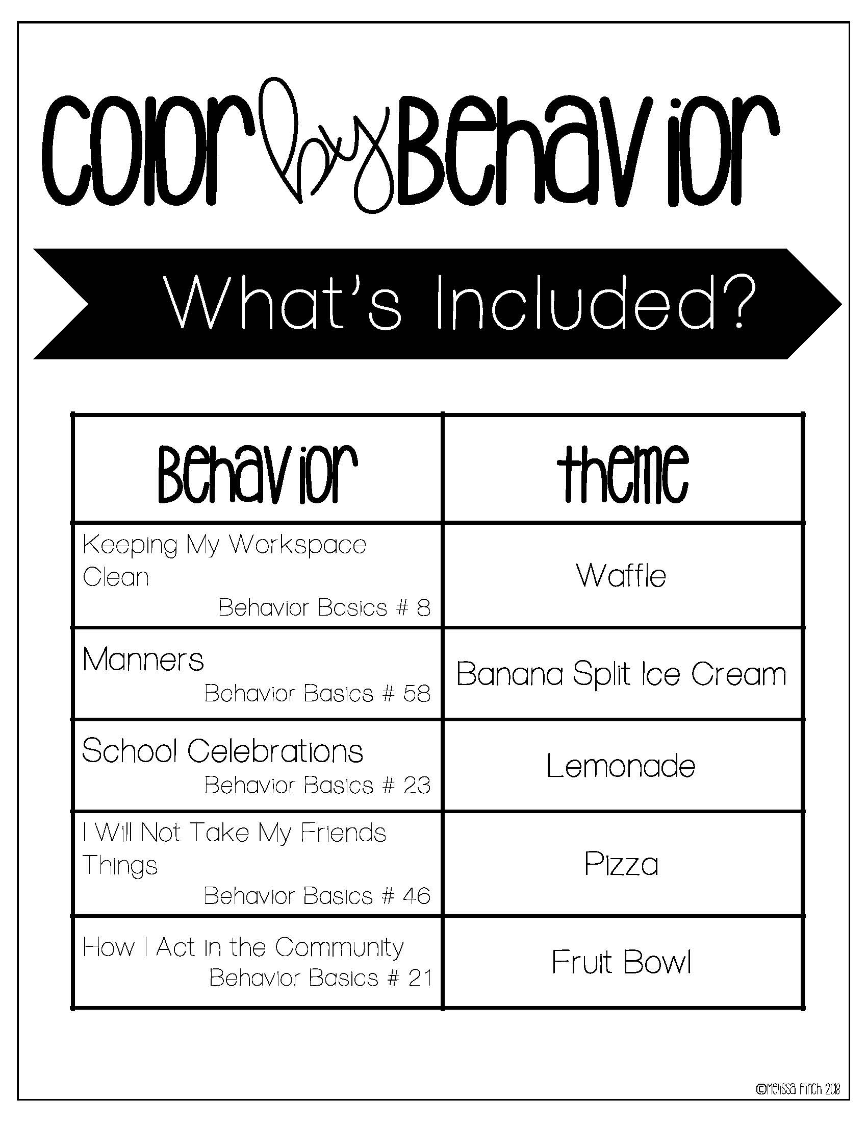 Reinforce basic behavior skills in the classroom with these fun color by behavior worksheets. 5 worksheets address 5 different behavior skills.